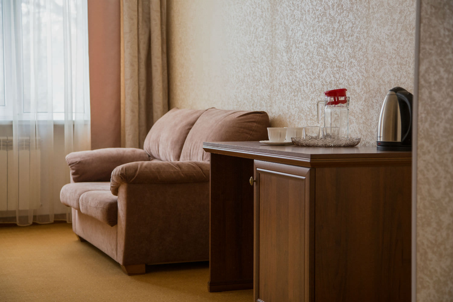 Площадь номера - 33 кв.м. 2 осн. места. 1 доп. место. Мебель: диван раскладной, зеркало, кровать двуспальная, кровать односпальная, стол, стулья, тумба под телевизор, шкаф. Оборудование: телевизор, телефон, холодильник, чайный набор посуды, электрочайник. Санузел: с душем, туалетные принадлежности. Сервис: Wi-Fi бесплатно, смена полотенец, смена постельного белья, уборка номера.