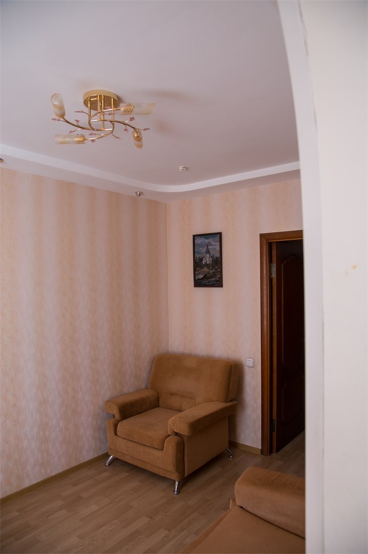 Площадь номера - 30 кв.м. 1 осн. место. 2 доп. места. Мебель: зеркало, кресло, кровать односпальная, столик туалетный. Оборудование: мини-холодильник, телевизор. Санузел. Сервис: Wi-Fi бесплатно, смена полотенец, смена постельного белья, уборка номера.