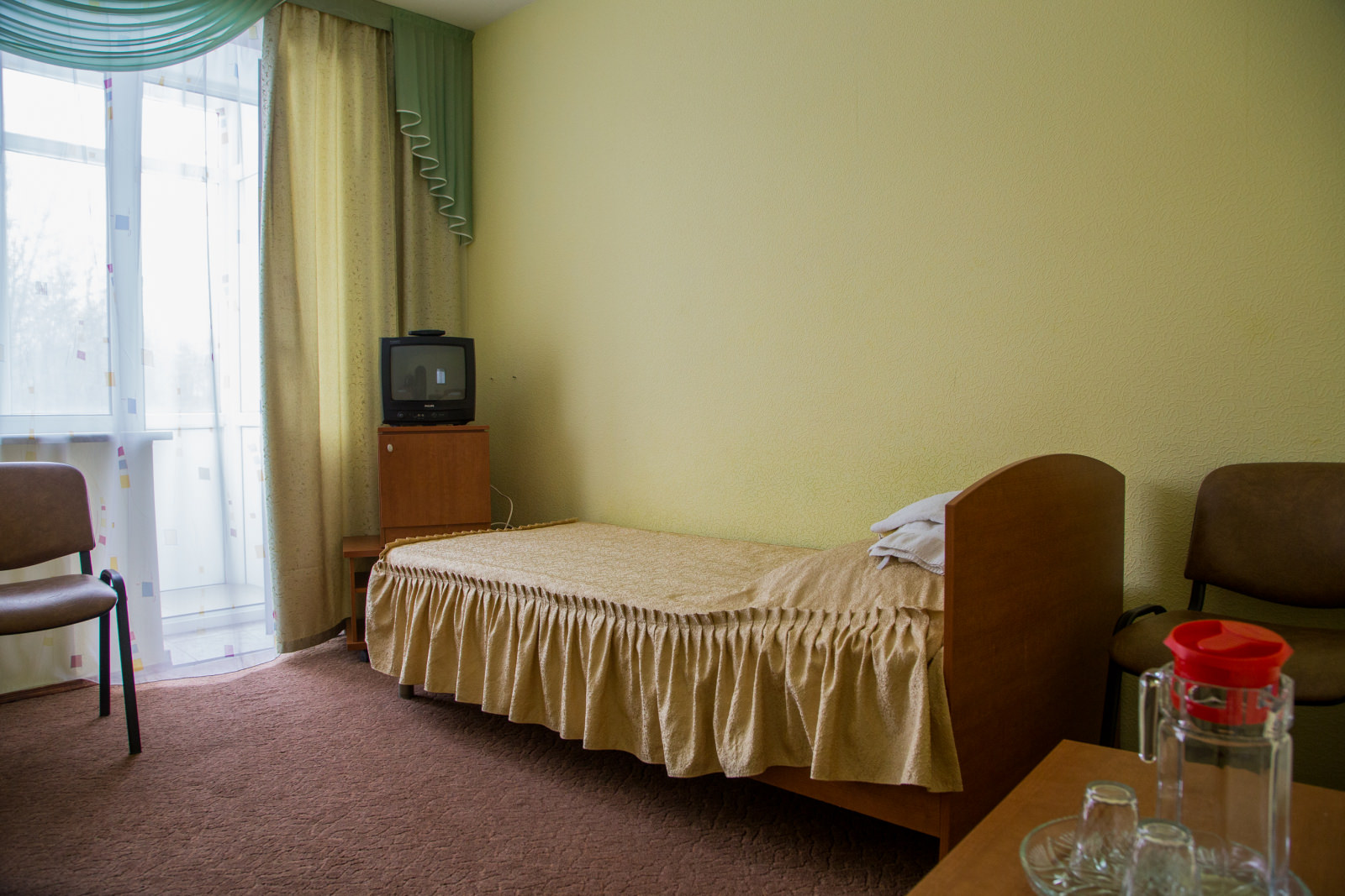 Площадь номера - 19 кв.м. 1 осн. место. Мебель: зеркало, кровать односпальная, стол, стул. Оборудование: мини-холодильник, телевизор, чайный набор посуды, электрочайник. Санузел: с душем, туалетные принадлежности. Сервис: Wi-Fi бесплатно, смена полотенец, смена постельного белья, уборка номера.